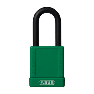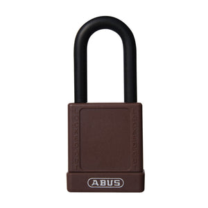 Abus 74/40 Safety Lock: Lightweight Insulated Safety Padlocks. Choose Color: Red, Yellow, Green, Purple, Orange, Blue, Black or Brown. Choose Keying: Keyed Different (KD), Keyed Alike (KA) or Master Keyed (MK). With 1-1/2" Shackle.