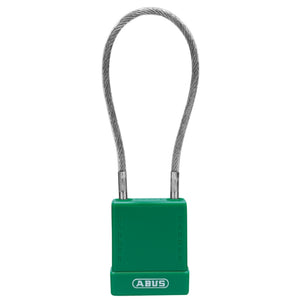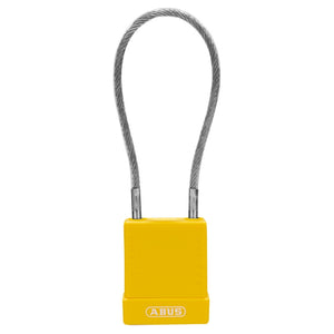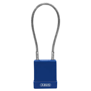 Abus 76/40CAB40 Lockout Locks: Plastic-Covered Aluminum Padlocks with Cable. Choose Color: Blue, Red, Yellow or Green. Choose Keying: Keyed Different (KD), Keyed Alike (KA) or Master Keyed (MK). With 8-Inch Flexible Cable Instead of Shackle.
