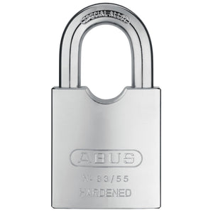 Abus 83/55 High Security Padlocks: Rock Hardened Steel Locks. Choose Keying: Keyed Alike (KA), Keyed Different (KD) or Master Keyed (MK) or 0-Bitted (Size-0 Pins/Keys). Keyway: Yale (100), Kwikset (200), Schlage 5-Pin (300), Schlage 6-Pin (306), Schlage Everest (EVER), Corbin (400), Corbin L4 (410), Sargent (700), Weiser or Falcon (800), Arrow (900), Russwin D1-D4 (1000) or Schlage C-L (3000). Shackle: 1-7/16" Tall. Enter Existing Key Number to Match.