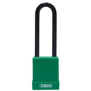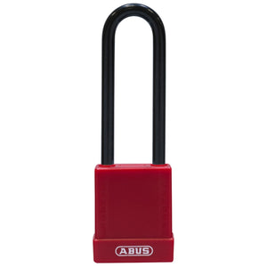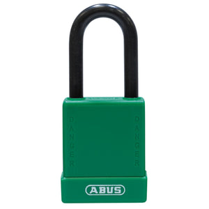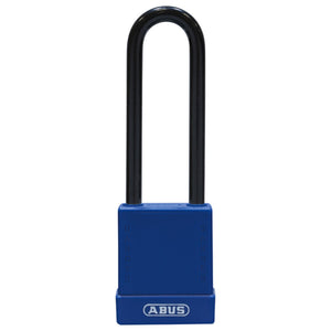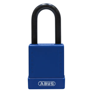 Abus 76/40 Safety Locks: The High Security Aluminum Core Safety Padlock. Choose Color: Blue, Red, Yellow or Green. Keying: Keyed Different (KD), Keyed Alike (KA), or Master Keyed (MK). Shackle:1-1/2" (76/40) or 3" (76/40HB75) Nylon Covered Steel.