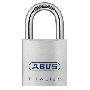 Abus 80TI/40 Titalium Series Padlocks:Strong, Lightweight, Innovative - Titalium is the New Generation of Padlocks! Choose Keying: Keyed Different (KD) or Keyed Alike; Choose Shackle:1 (80TI/40), 1-9/16" (80TI/40HB40) or 2-1/2 (80TI/40HB63) Tall.